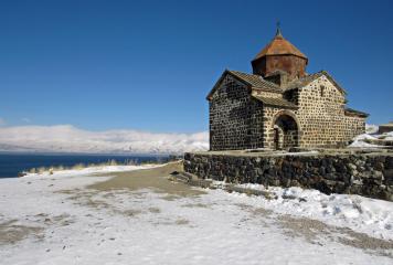 14.02.2017 Айраванк - монастир, що знаходиться на західному узбережжі Севану між Севанаванком і Норатусом. Стара монастирська церква дуже гармонійно виглядає на тлі озера Севан та гір, що його оточують. Поруч з монастирем - свідок давньої держави Урарту - залишки фортеці Бердунк.