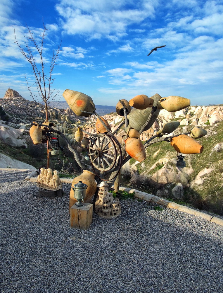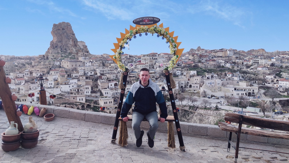 На терасі готелю був оглядовий майданчик з фотозоною. З нього відкривався чудовий вид на Гьореме і скелі Каппадокії.