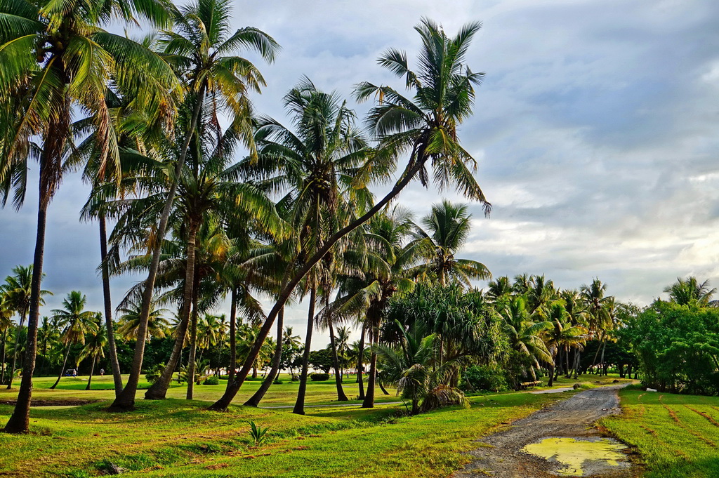 Меланезійський пейзаж по дорозі через острів:Острів Денарау (Фіджі)Острів Денарау (Фіджі)Острів Денарау (Фіджі)