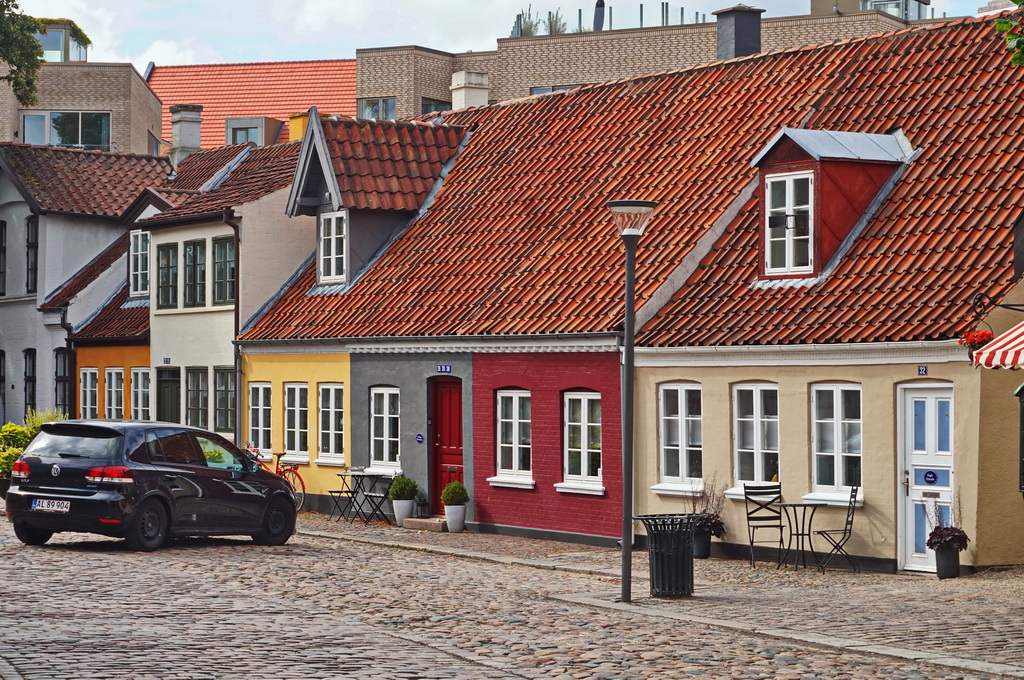 На вулиці Hans Jensens Strðde та на сусідніх вуличках можна зустріти багато як фахверкових будинків, так яскравих одноповерхових кам’яних будиночків під високим дахом.