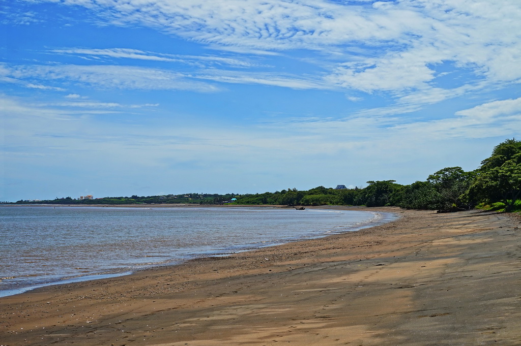 Якщо повернутися на трасу і пройтися менше кілометра в бік Нанді, і повернути направо до океану, ми вийдемо на безлюдний пляж. Тут немає пальм і білого пісочку, але для першого знайомства з Тихим океаном підійде. Великих хвиль немає, бо від них острів Віті Леву захищає бар’єр з невеликих островів.Фіджі (острів Віті Леву): пляж на березі Тихого океануФіджі (острів Віті Леву): пляж на березі Тихого океану