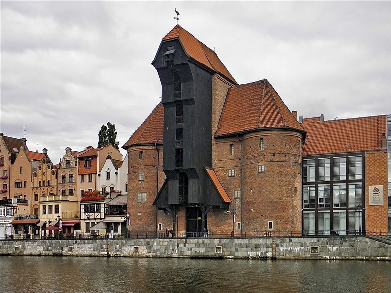 Уздовж набережної вишукалося декілька так званих "водних брам", яки відкривали вхід до міста з боку Мотлави. Найцікавіша брама - це знаменитий гданський "Журав" - портовий кран, збудований у 1442 - 44 роках.