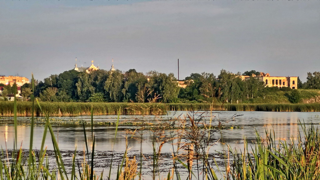 Ми закінчуємо знайомство з найстарішою частиною Ізяслава - Старим Заславом. І переміщаємося на правий беріг Горині, де розташована пізня частина міста. Ось так вона виглядає: на протилежному боці - костел св. Йосифа і руїни палацу Сангушків: