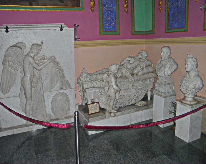 У 1938 році надгробок перенесли до кам'янецької катедри. Скульптурна композиція складається з ложа, на якому лежить подоба дівчини Лаури. У підніжжі монумента — розкрита книга; ліворуч ложа стоїть амур, що спостерігає сон панни. Зліва і справа від ложа на обніжжі встановлено бюсти батьків Лаури — Софії і Карла Пшездецьких. На надгробку вміщено напис: «Дівиця Лаура. Згасла в розквіті літ. Її прекрасне обличчя є найкращим у світі»