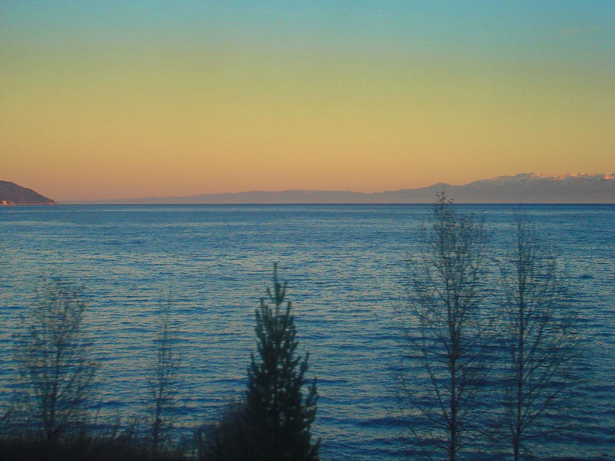 Погодка цього дня була дивовижна. Не дивлячись на середину жовтня можна було виходити на вулицю в одній футболці з коротким рукавом. На іншій же стороні Байкалу можна було спостерігати зісніжені гори хребта Хамар-Дабан: