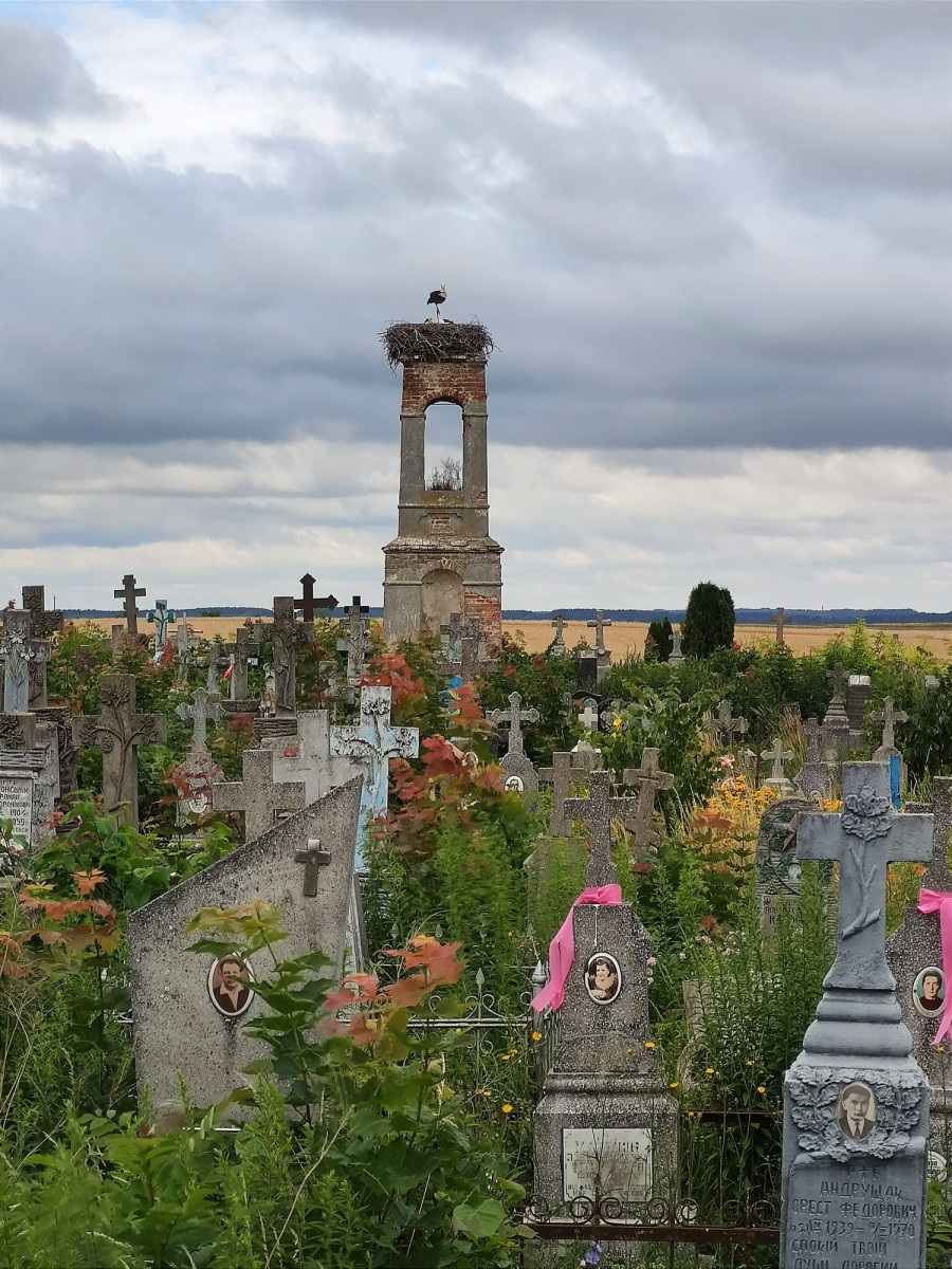 На цвинтарі є дві каплички. Одна з них, очевидно, дуже стара. На її вершині є гніздо лелеки.