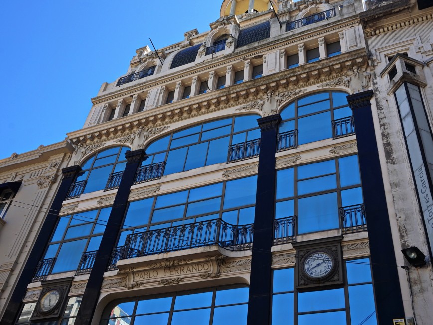 На протилежному західному боці площі з Паласіо Сальво кричуще контрастує совкова несмачна офісна будівля, обліплена кондиціонерами.