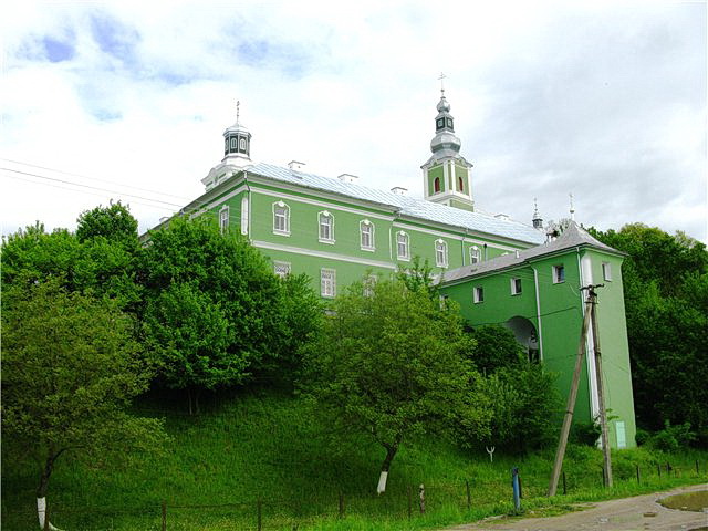 Миколаївська церква зведена в 1789-1804 роках у у класичному стилі з помітними барочними впливами. У плані - витягнутий прямокутник з напівкруглою апсидою й квадратною двох'ярусною вежею-дзвіницею на заході. Стіни викладені із цегли й оштукатурені. Фасади розчленовані фільонками, вікна обрамлені лиштвами. В інтер'єрі зберігся настінний живопис середини XIX-XX ст. Частково стінопис виконаний в 1910-1911 рр. худож. Ю. Вирагом у техніку масла. В 1978-1979 рр. живопис відреставрований художниками-реставраторами А.І. Марамполь-Ским, Р.М. Юсимом, В.І. Подкопаєвой. У крипті собору похований будівельник монастиря Д. Рац ( 1710-1782 рр.).