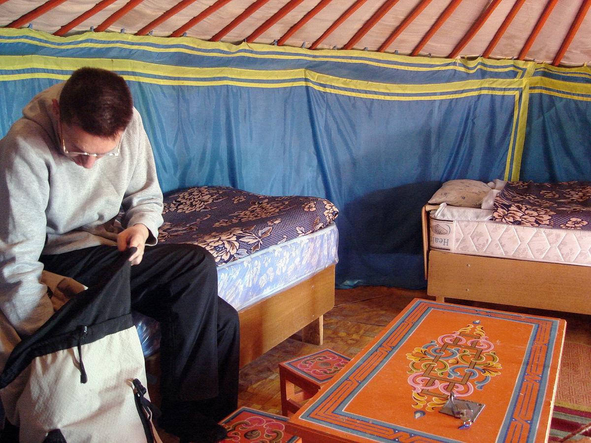 Ночі в Гобі в жовтні - це справжній екстрим! Холодно так, що доводилося спати в усьому одязі, який тільки у нас був, і під усіма ковдрами, які були в юрті. І все одно ми мерзнули. Всю ніч на вулиці жахливо свистить вітер, буквально розриваючи юрту. Щонічним випробуванням було ходіння в туалет: відкриваєш двері юрти, а її трохи не відриває. Доводилося упевнено триматися на ногах, вітер буквально збиває з ніг. І усе це ще в повній темряві! Технологію безпосереднього ходіння в туалет при такому вітрі навіть і описувати не буду!