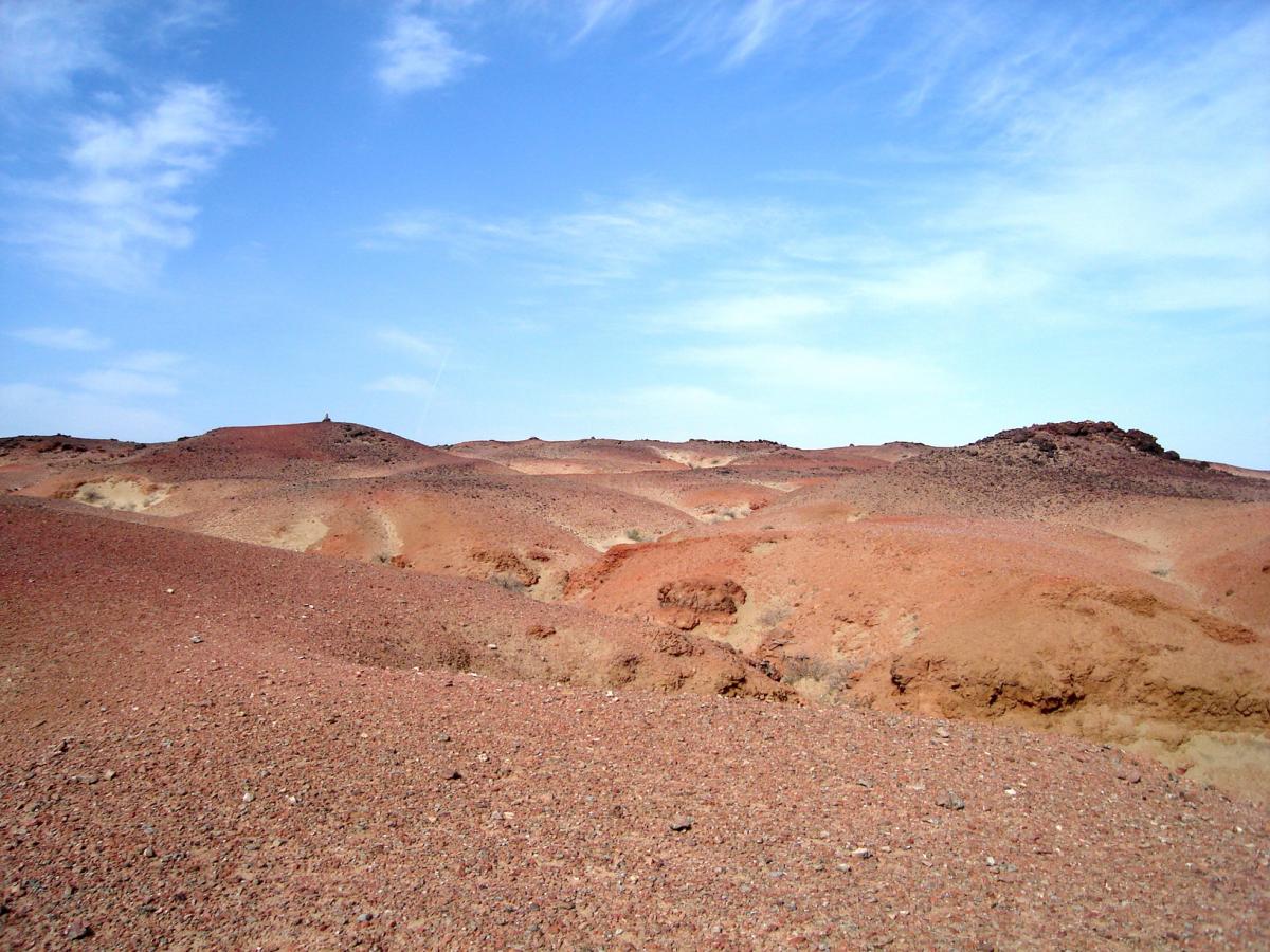 Східна Гобі дуже різноманітна. Є звичайна кам'яниста пустеля, є - червоні піски, є спражні білі зибучі бархани: