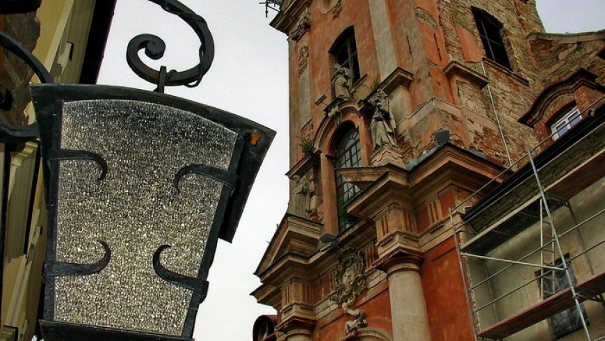 В північно-західному куті площі Польський ринок стоїть комплекс катедрального костелу Петра і Павла - унікального храму, кому немає рівних в Україні. Його унікальність - це поєднання того, що, здавалось би, неможливо поєднати: католицького костелу, турецького (мусульманського мінарету) та Мадонни на ньому. Крім костелу, до комплексу входить оборонна дзвіниця та тріумфальна арка.