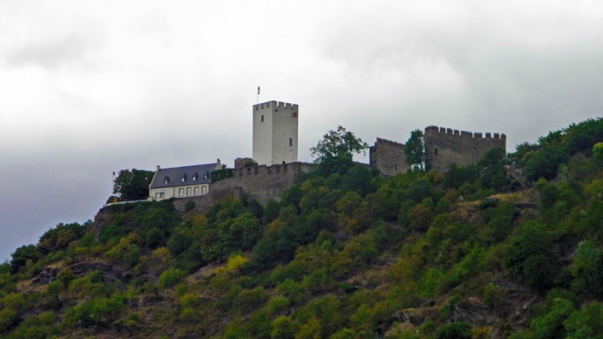 Ще одне містечко на Романтичному Рейні з двома черговими романтичними замками над Рейном. В маленькому містечку Кауб крім ратуші і міських укріплень розташовані відразу два замки. Один з них, Гутенфельс, традиційно для рейнських замків знаходиться на схилі гори над поселенням. Розташування другого замку, що має складну для вимови назву Пфальцграффенштайн, є досить незвичайним. Він, ніби корабель, стоїть прямо посеред Рейну. Замок Пфальцграфенштайн (Burg Pfalzgrafenstein) - митний замок, розташований на невеликому острові Фалькенау. Він здобув популярність завдяки своїй незвичайній формі, що нагадує корабель. Фортеця ніколи не була захоплена...