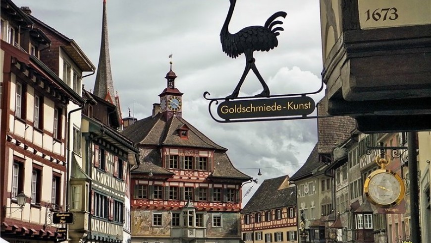 Сторінка на реконструкції дивіться також: Прогулянка Штайн-ам-Райном: замок, абатство, фахверки і міські фортифікації Сьогодні побуваємо, напевне, на найкрасивішій вулиці Швейцарії – Unterstadt, що є головною пішохідною вулицею містечка Штайн-ам-Райн. Вулиці веде від Rathausplatz – площі з міською ратушею фантастичної краси, до західних воріт міста – Undertor. Розмальовані будиночки, що вишикувалися в ряд на Rathausplatz, є буквально витворами мистецтва. Вони зачаровують туристів своїми фресками і маленькими балкончиками-еркерами, що зберігають дух давно минулої епохи.  Сама будівля ратуші (Rathaus) відноситься до XVI століття. Довгий час...