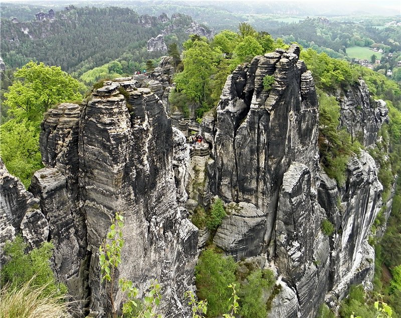 Вже з вікна потягу видно круті високі скелі Бастаї з знаменитим Бастайським мостом, що з'єднує між собою скелі, і є основною туристичною фішкою Саксонської Швейцарії: