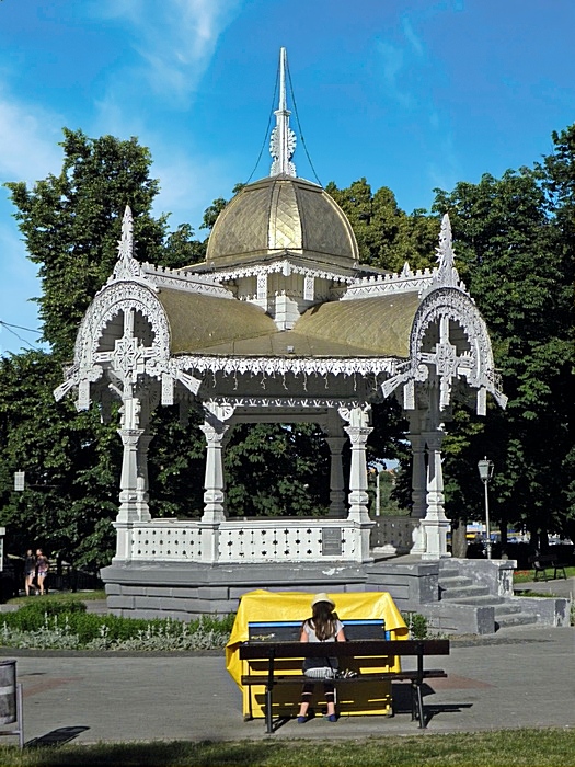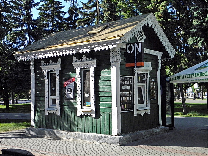 Неподалік від альтанки збереглась ще одна подібна споруда - дерев'яний кіоск поч. ХХ століття: