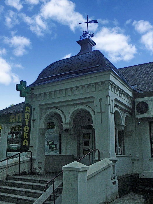 Дитяча аптека з характерним ганком у неруському стилі, поч. ХХ ст. (Троїцька, 51):