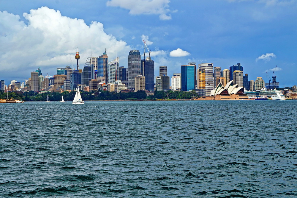 Про Австралію я навіть не мріяв, настільки далекою і недоступною вона мені здавалася. Але у квітні 2019 року мені випала нагода зробити експедицію-розвідку на маловідомі для туристів острови Меланезії і Полінезії у Тихому океані. Мій переліт з Сінгапуру у Нанді (Фіджі) був зі стиковкою в Сіднеї всього у 6 годин. Враховуючи, що в’їзні формальності в аеропорту забирають 1 годину, і ще за 2 години треба бути в терміналі перед відльотом, на Сідней залишалося всього 3 години. Погодьтесь, що оглянути все найцікавіше в Сіднеї за 3 години – плани більш ніж амбітні. Але мені це вдалося! І не лише подивитися головні цікавинки міста, але поплавати затокою Порт Джексон і поглянути на місто з води. А все - завдяки грамотному похвилинному плануванню.Вид на Сідней від затоки Порт Джексон