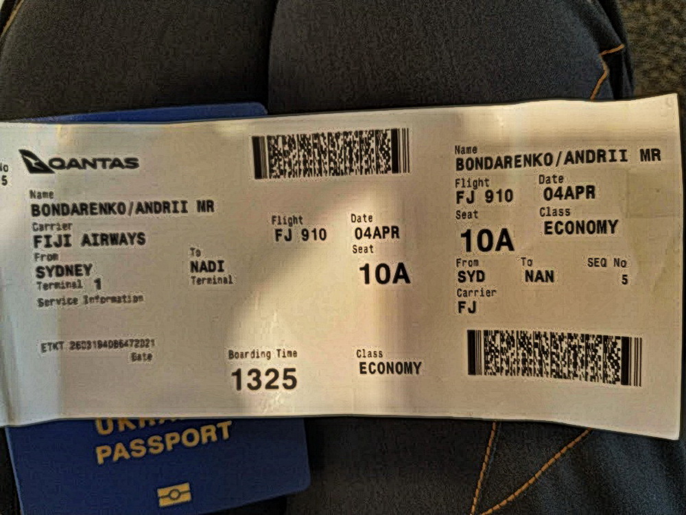 Але ж пам’ятайте, що якщо у вас транзитна віза, квитки «туди-назад» не підійдуть. Якщо ви прилітаєте в Сідней з Сінгапуру або Куала-Лумпуру, то вам треба мати квиток в третю країну. Це може бути Нова Зеландія, але вона також візова. Тому я раджу використовувати транзит через Сідней, коли ви подорожуєте в одну з безвізових країн Меланезії. Це може бути Фіджі чи Вануату.Посадковий талон Сінгапур-Сідней