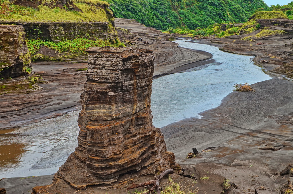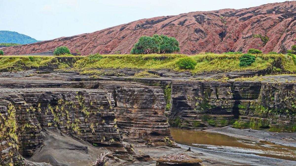 А зовсім поруч місце – яке не показують туристам. Більше того, про нього знають далеко не усі місцеві. Неподалік від «моря попелу» можна відшукати мальовничий каньйон, на дні якого тече гірська річка з водоспадами, а стінки викладені відшаруванням гірських порід. Цю картину вдало доповнюють гори майже червоного кольору позаду каньйону.