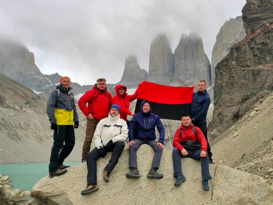 Наприкінці другого тижня нашої експедиції ми згадали, що у Андрія є із собою червоно-чорний прапор. І зробили групове фото з ним.