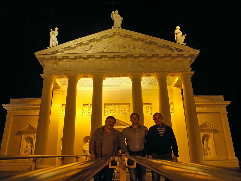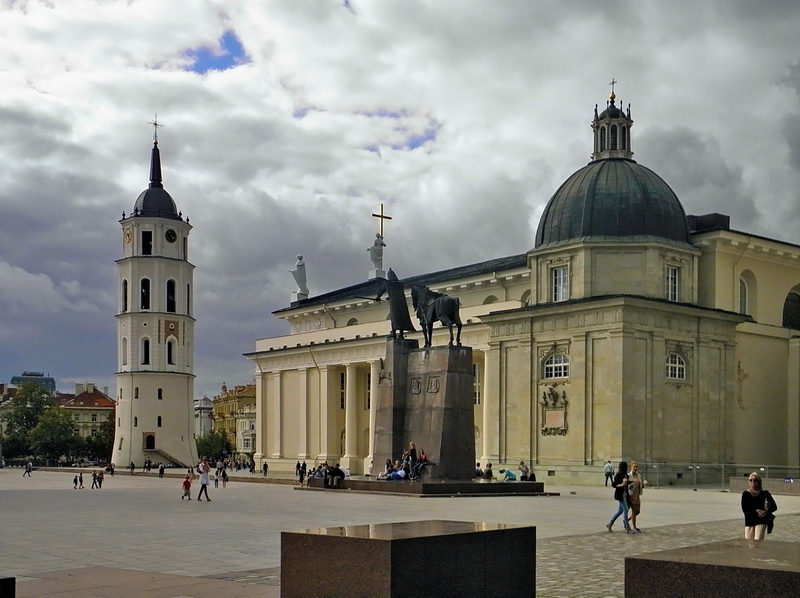 11.05.2015 Кафедральний собор-базиліка Святого Станіслава та Святого Владислава - головний римо-католицький храм Вільнюса, який знаходиться на Катедральній площі у Старому місті у підніжжя Замкової гори. Храм був заснований великим князем литовським Міндовгом (королем литовським з 1223 року), після його хрещення у 1251. З поверненням Міндовга в язичництво після 1261 року собор був зруйнований, із залишків було знову споруджено язичницьке капище. З хрещенням Литви в 1387 році король польський і великий князь литовський Ягайло, прибувши з великою свитою з Кракова у Вільну, зруйнував язичницький храм і заклав на його залишках християнський храм Святого Станіслава.