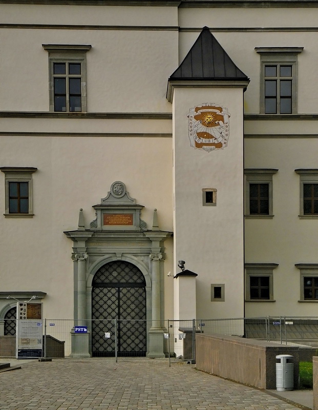 Чьотирьохярусна дзвіниця (XVI - XVIII ст.), що стоїть окремо поруч з костелом, має висоту57 метрів і зведена на вежі Нижнього замку. У першій чверті XVI століття італійський архітектор Аннус (Annus) на оборонній круглій вежі два восьмикутні яруси для дзвонів. Верхній ярус зведений у кінці XVI столітті і пізніше пристосований для годинника. Нижня кругла частина відноситься до готики, у двох середніх ярусів є риси бароко, четвертий ярус в стилі класицизму.